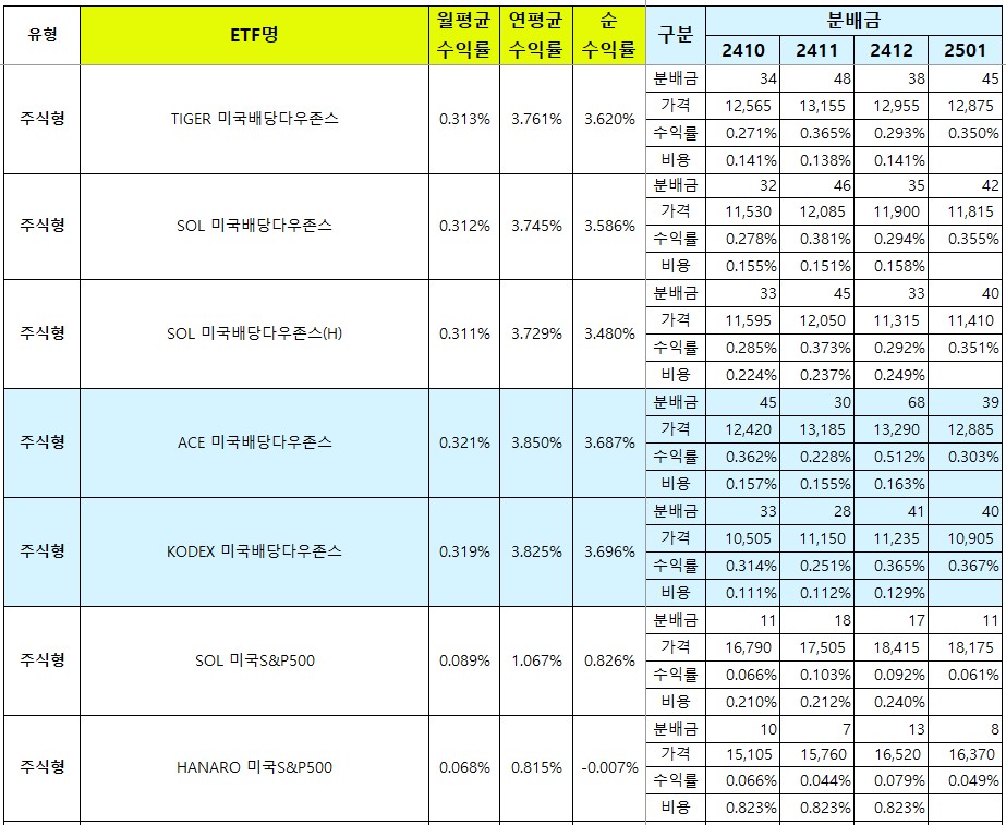 | 한국판SCHD, 미국배당다우존스 2024년 성적 비교 (2) | 2025.01.04 |