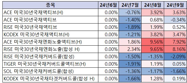 - 만약 작년 7~9월 중에 미국채 월배당 ETF에 투자하기로 했다면, ACE 미국30년국채엔화노출액티브(H)나 RISE 미국30년국채엔화노출(합성H)에 투자를 했겠죠.