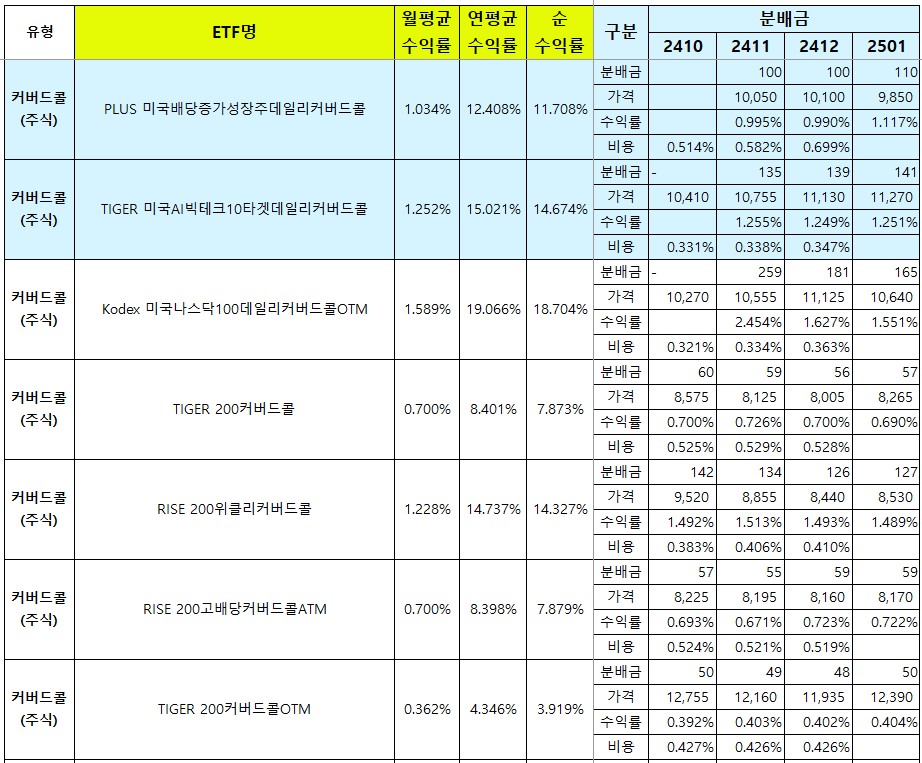 | 코스피200 관련 커버드콜 총정리 (0) | 2025.01.28 |