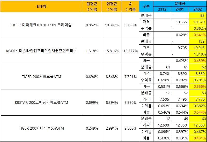 이렇게 국내 상장된 월지급ETF의 2월 비용을 알아봤는데요,
