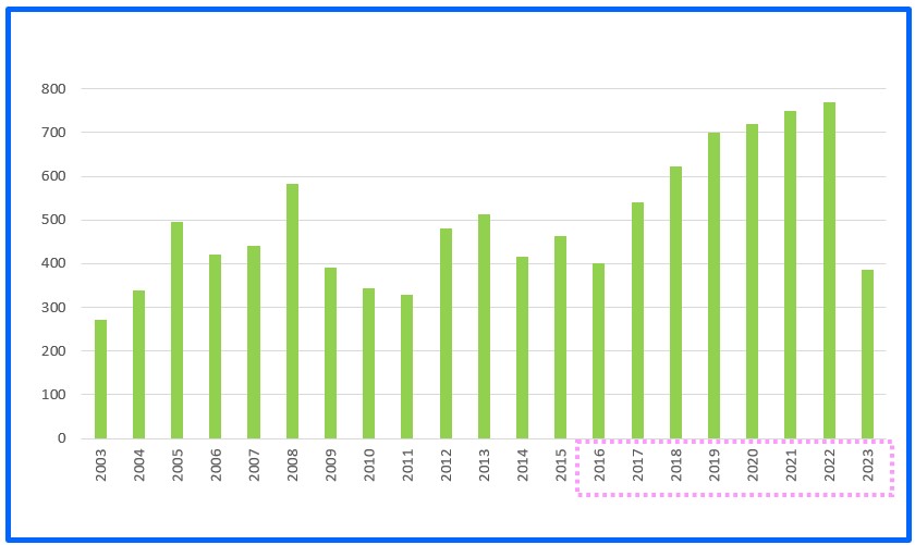 - 2003년부터 2023년 상반기까지 일 년에 두 번씩 꾸준히 배당금을 지급해왔어요.