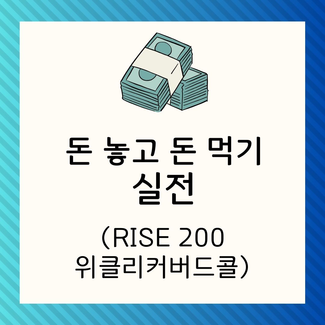 - RISE 200위클리커버드콜은 8월까진 월 1%의 분배금을 지급했으나, 9월은 1.46%, 10월은 1.49%를 지급했어요. 따라서 향후 8700원의 주가가 유지되고, 월 1.45%의 분배금이 지급된다고 하면 매월 주당 126원, 총 76,700원(126원 * 608주)의 분배금이 예상되며,