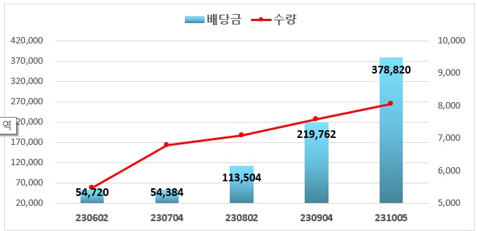 - 첫달에 발생한 배대마진 58,300원은 원금을 상환하여 두 번째 달엔 대출이자를 줄임으로써 이익을 키우는 방법이 있고, 아니면 주식을 더 사서 배당금을 더 키우는 방법이 있는데요, 현재 생각하고 있는 계획은 이래요.