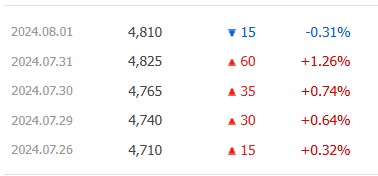2024년 10월~12월 배당금이 2023년 10월~12월과 동일 (총 339원) → 배당수익률 7.58%