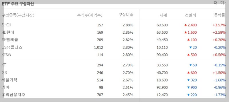 - 현재 구성 종목은 위와 같이 10개의 종목으로 구성이 되어 있어요.
