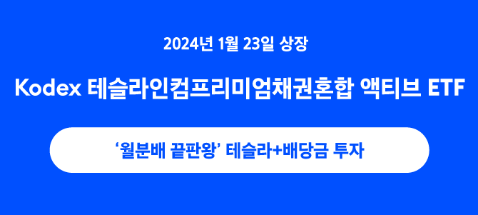 | KODEX 테슬라인컴프리미엄채권혼합액티브 (국내월배당ETF) (1) | 2024.01.28 |