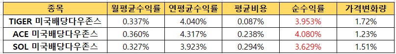 가격변화량은 배제하고 분배금에서 발생하는 순수익률만 고려하여 ACE나 TIGER 중에 선택하면 될거 같아요.