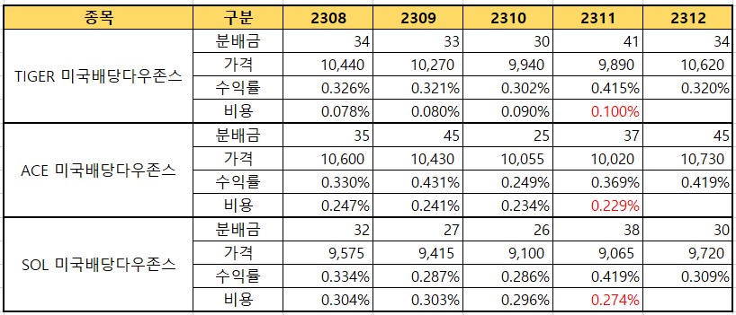 | 한국형 SCHD 8월 비용비교 (TIGER/SOL/ACE 미국배당다우존스) (2) | 2023.09.13 |