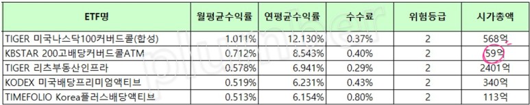 2위 종목인 "KBSTAR 200고배당커버드콜ATM" 이렇게 두 종목에 50대 50의 비율로 투자를 하려고 했어요.