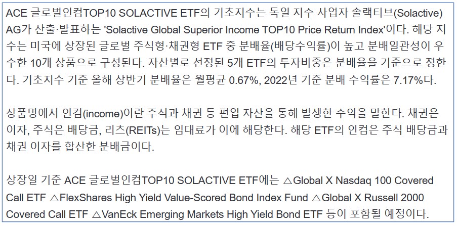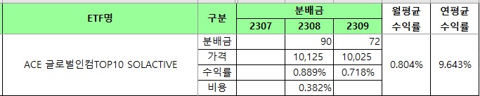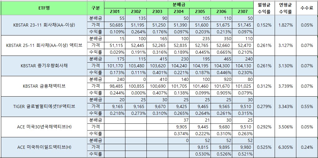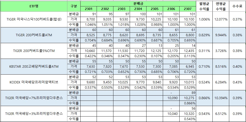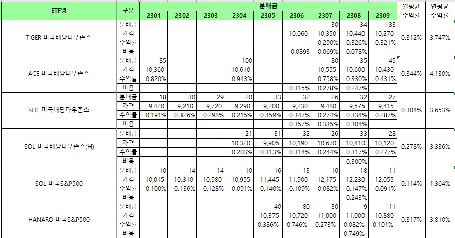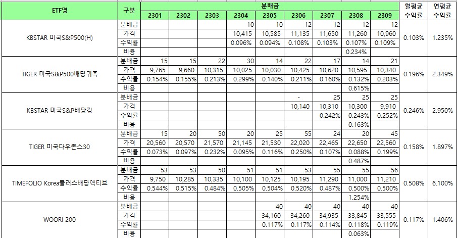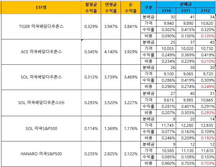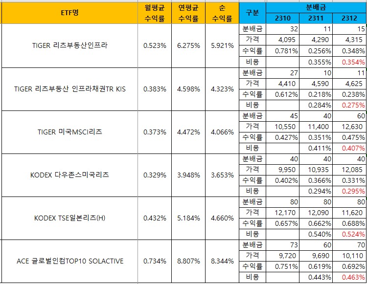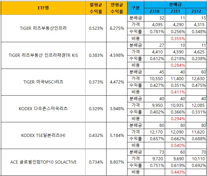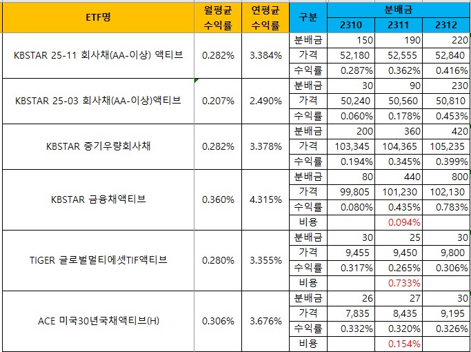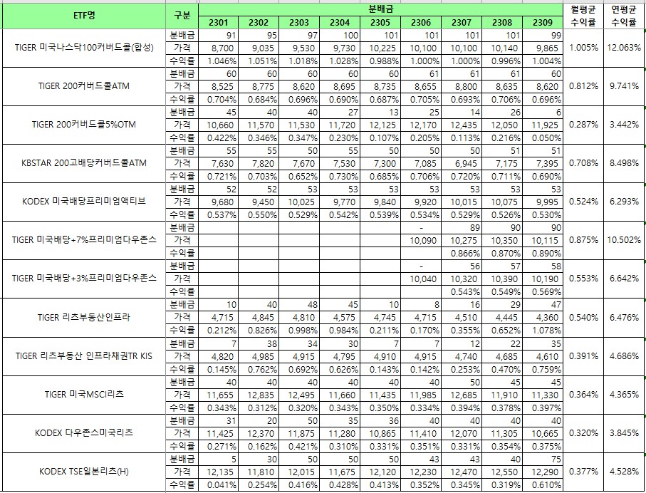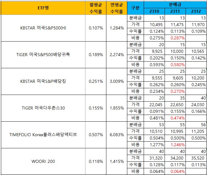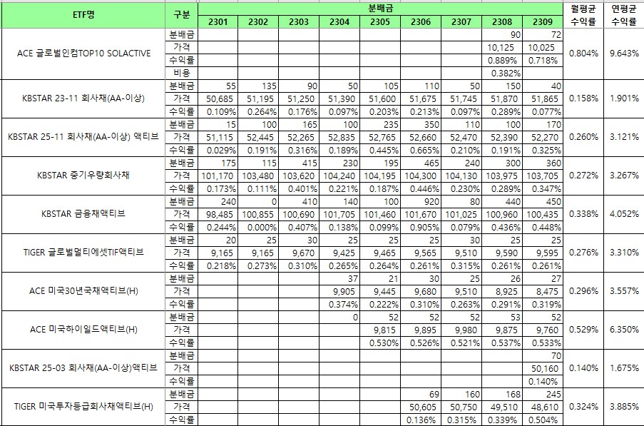 그럼 국내 월배당 ETF의 2023년 마지막 비용 정리는 이걸로 마지막이구요.
