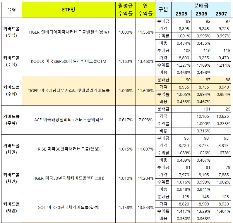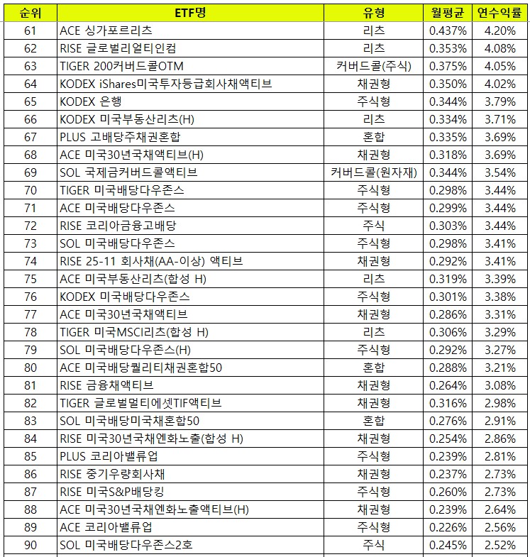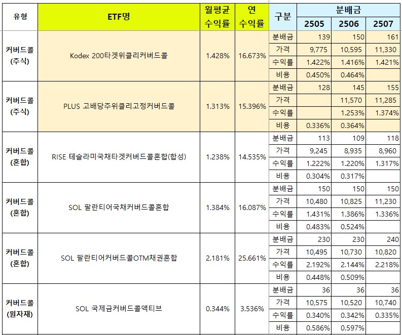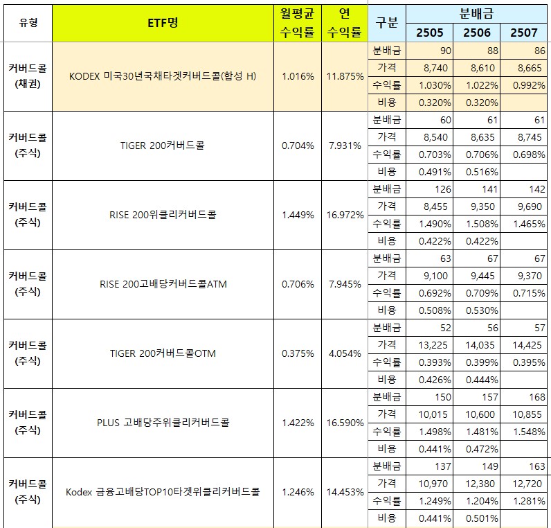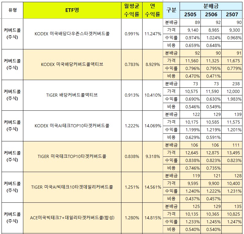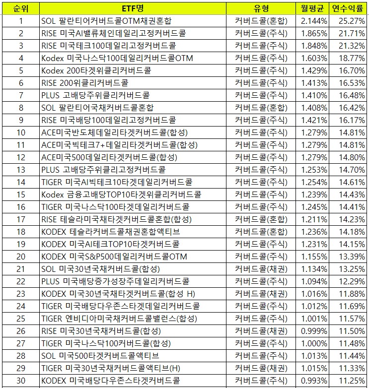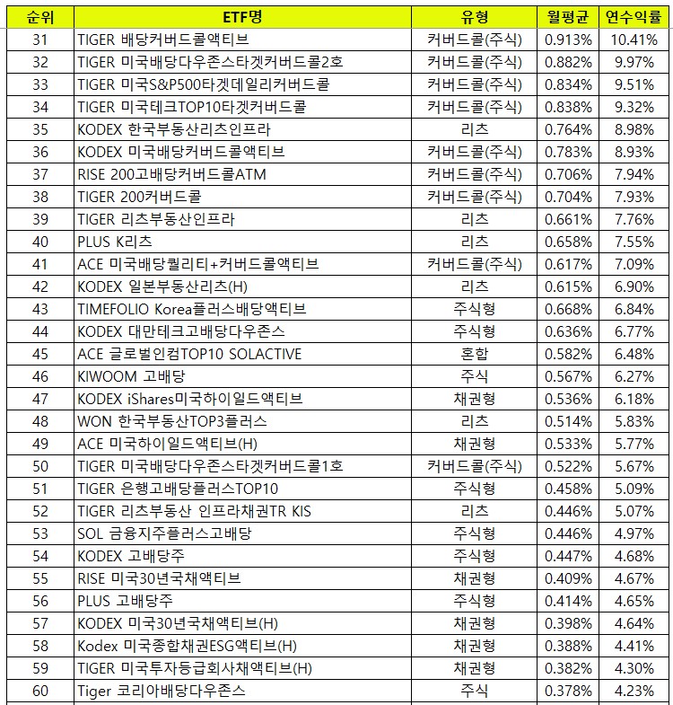 - 배당수익률 상위 34개는 모두 커버드콜 종목이에요.