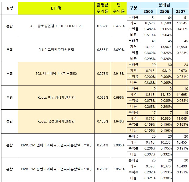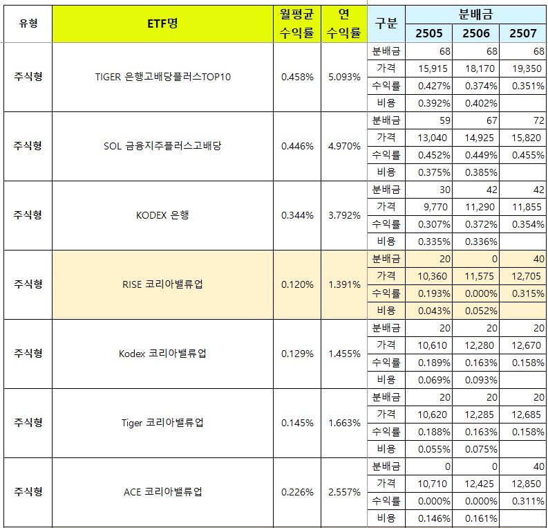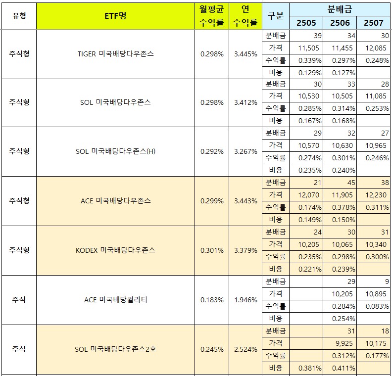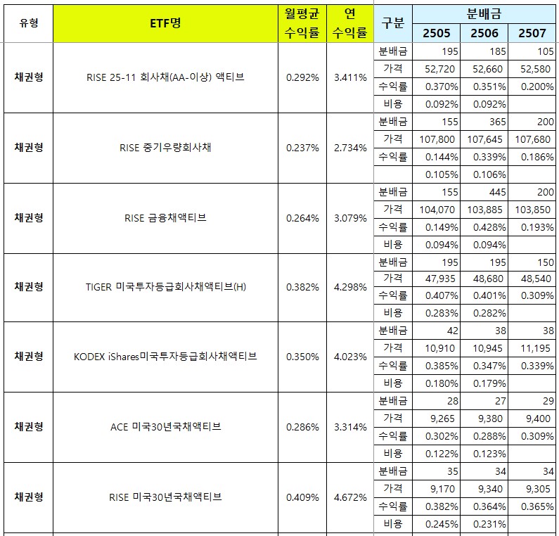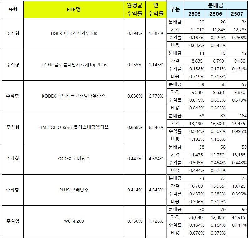 그럼 아래에서 2025년 7월 분배수익률 순위와 유형별, 종목별 분배금 확정 내역을 공유할게요.