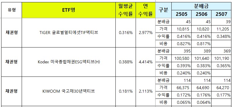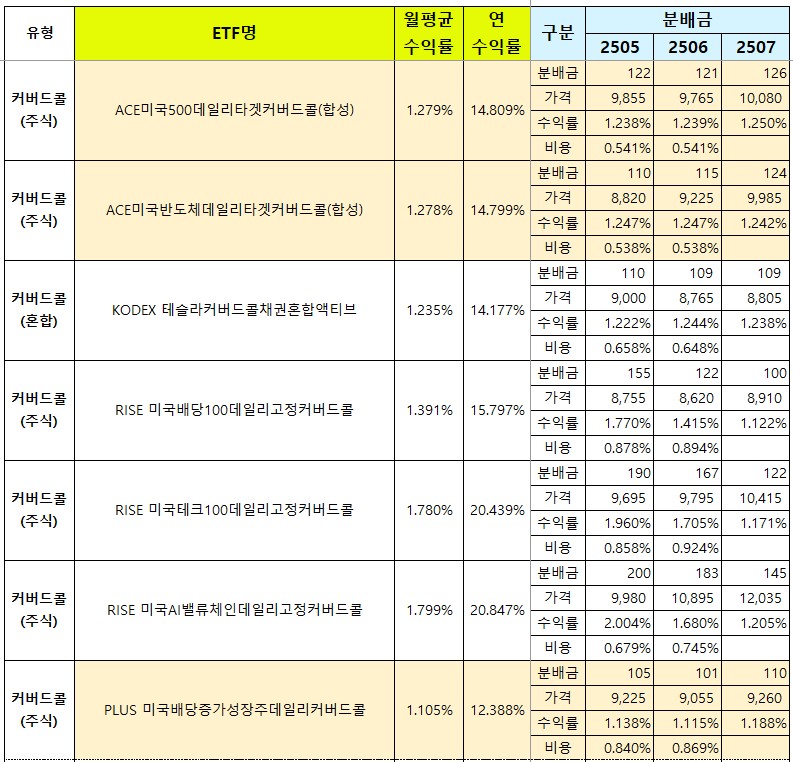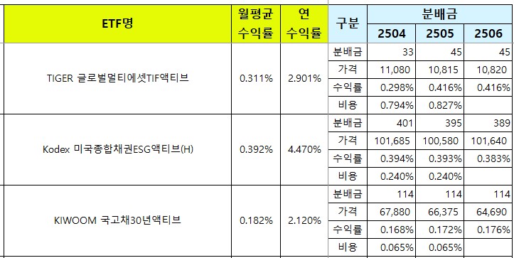 | [국내월배당ETF] 25년 8월 월중 분배금 (지급기준일 15일 종목) (6) | 2025.08.15 |