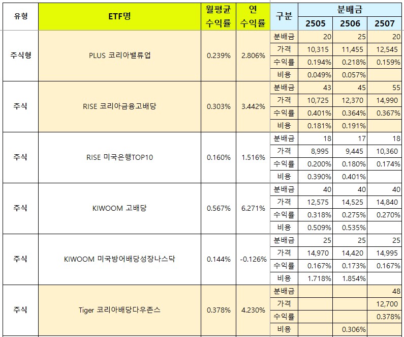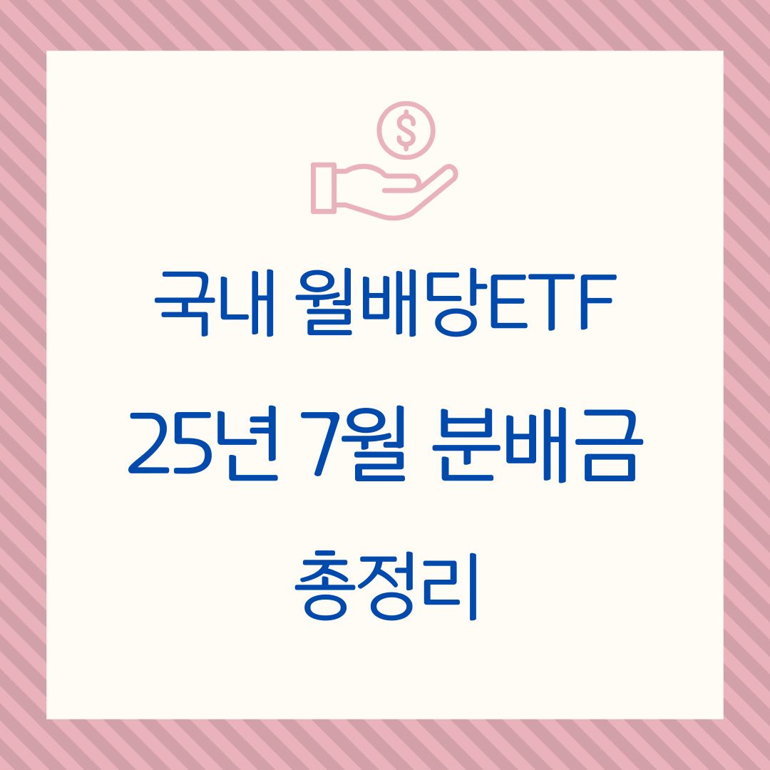 | [국내월배당ETF] 25년 8월 분배금 총정리 (6) | 2025.08.31 |