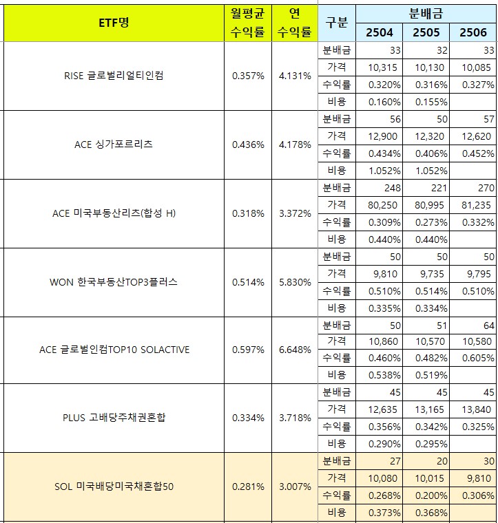 | [국내월배당ETF] 25년 6월 월중 분배금 (지급기준일 15일 종목) (2) | 2025.06.13 |