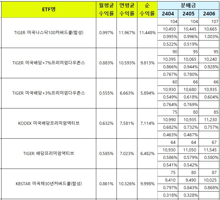 | [국내월배당ETF] 24년 7월 분배금 총정리 (0) | 2024.07.31 |