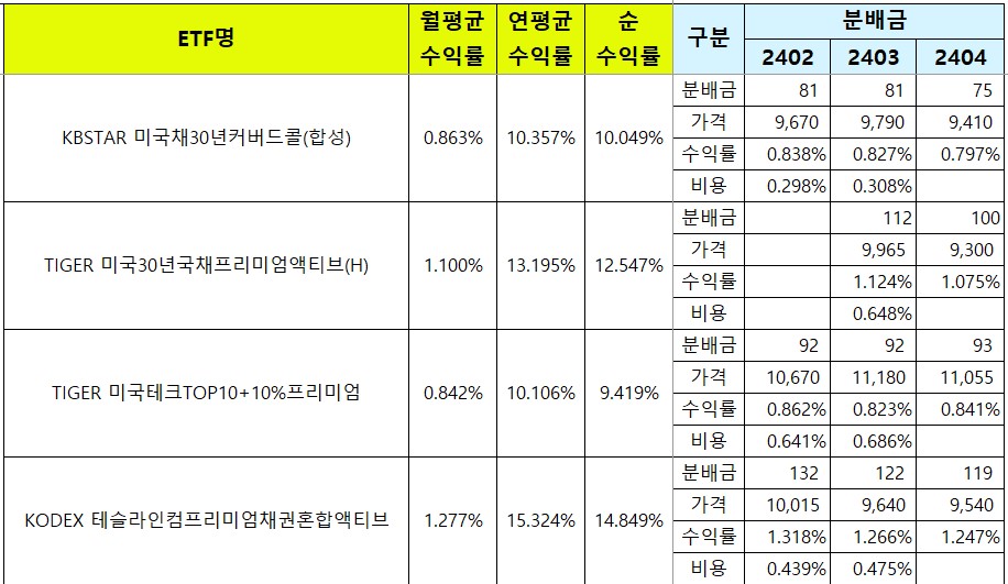 | [국내월배당ETF] 4월 분배금 정리 (0) | 2024.05.02 |