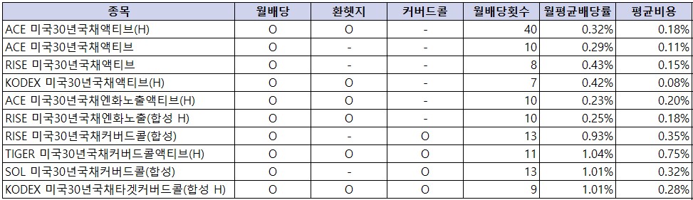 국내에 상장된 미국채30년에 투자하는 월배당 ETF를 살펴봤는데요,