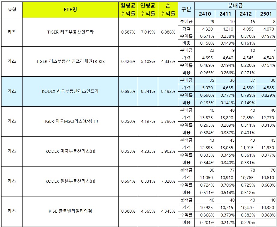 | TIGER 리츠부동산인프라, 역대 배당금과 배당성장률 (1) | 2024.12.29 |