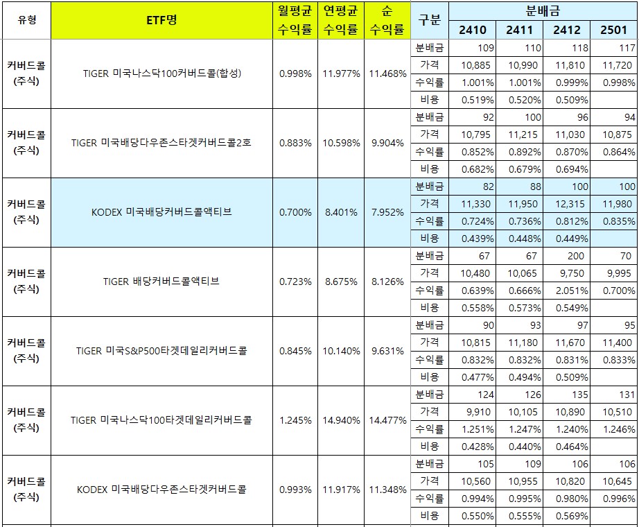| 코스피200 관련 커버드콜 총정리 (0) | 2025.01.28 |