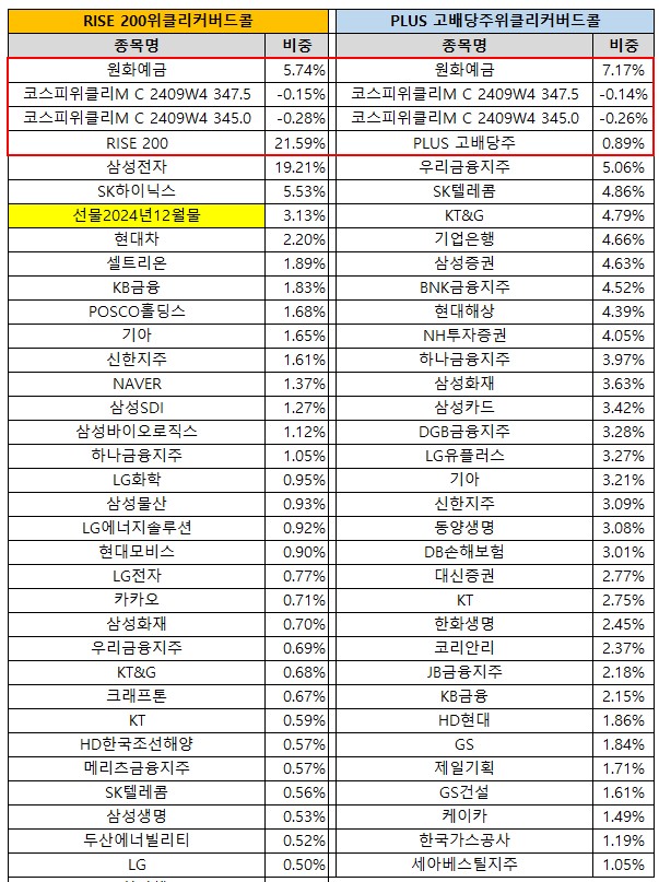 ■ 구성종목비교 (vs RISE200위클리커버드콜)