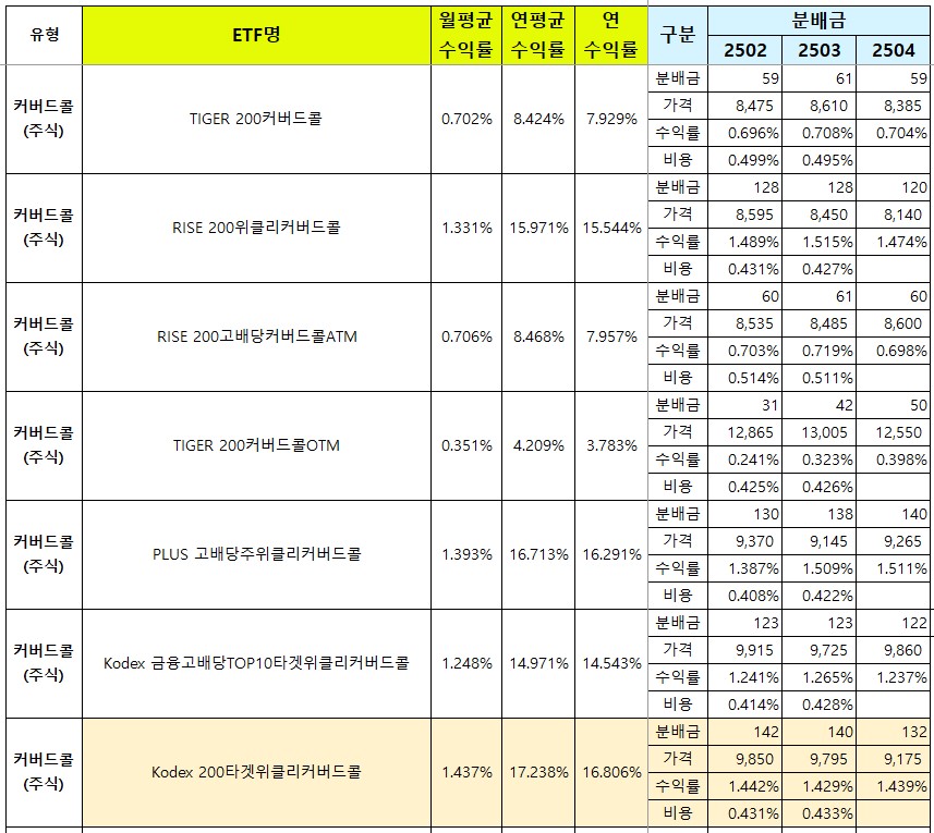 | 코스피200 관련 커버드콜 총정리 (0) | 2025.01.28 |