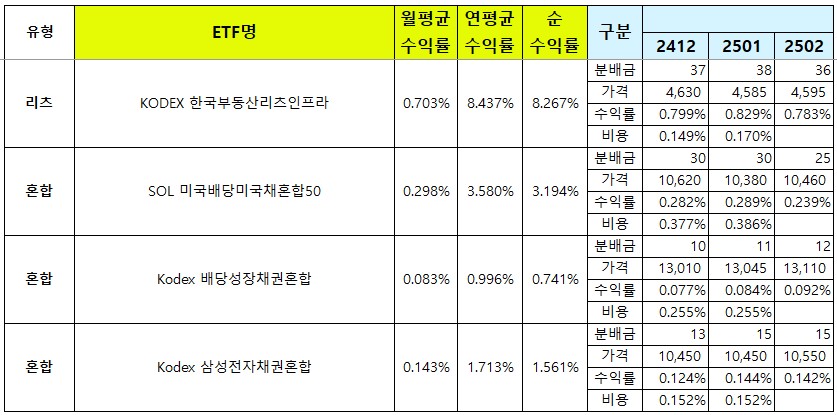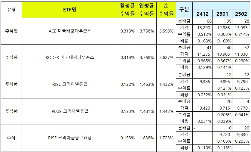 | 미국채 월배당ETF 수익률 비교 정리 (2) | 2025.01.26 |