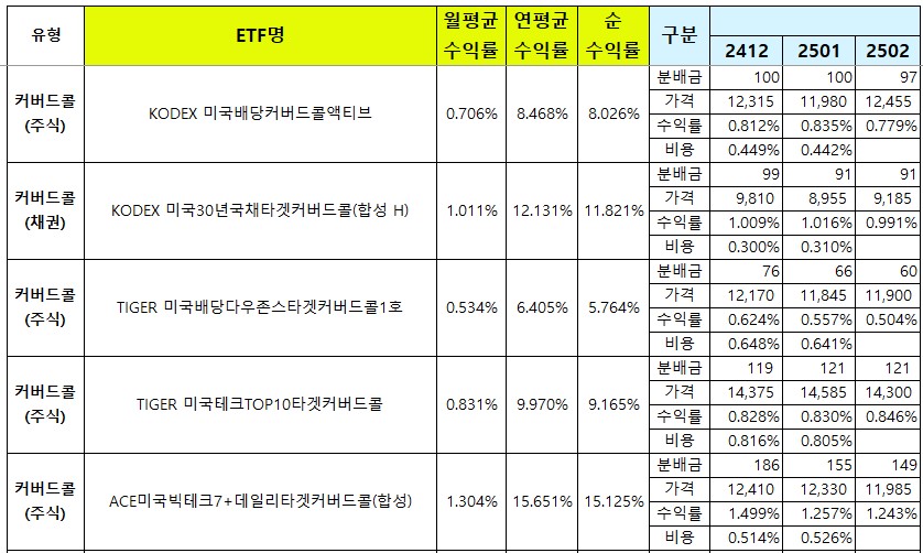 | 코스피200 관련 커버드콜 총정리 (0) | 2025.01.28 |
