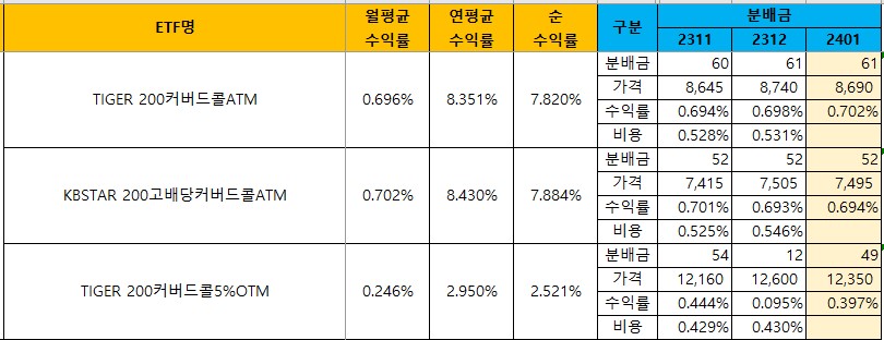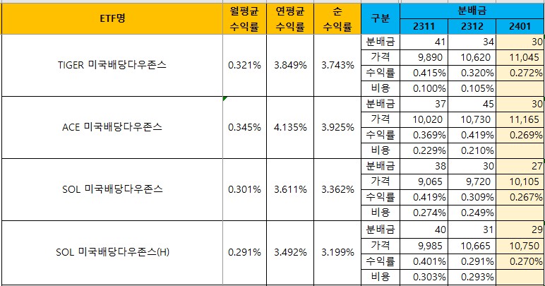 | [국내월배당ETF] 12월 비용 정리 (순수익률) (2) | 2024.01.11 |