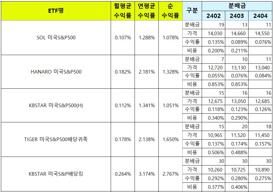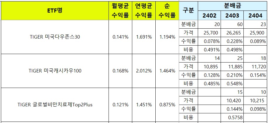 | [국내월배당ETF] 2월 비용 정리 (순수익률 순위) (0) | 2024.03.11 |