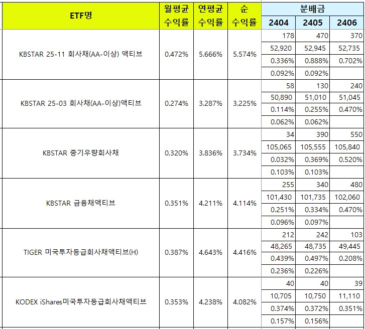 | [국내월배당ETF] 24년 7월 분배금 총정리 (0) | 2024.07.31 |