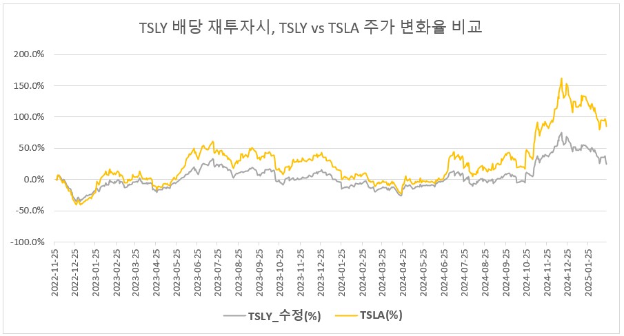▶ TSLY 배당금 재투자시, 주가변화율 비교